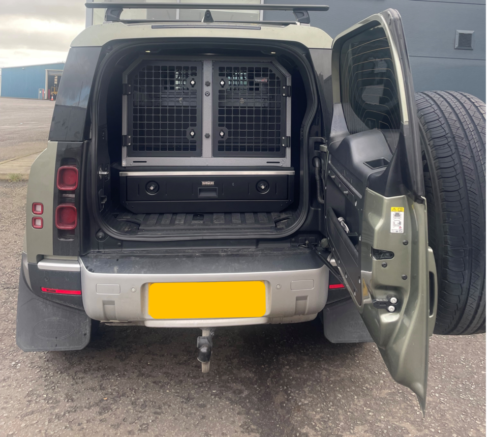 The TransK9/C65 Double Dog Cage designed for Land Rover Defenders 2020 – Present to fit with Drawer TL2. These can be sold separately or can be purchased together as a combo. Excluding Defender 90, but will fit Commercial 90