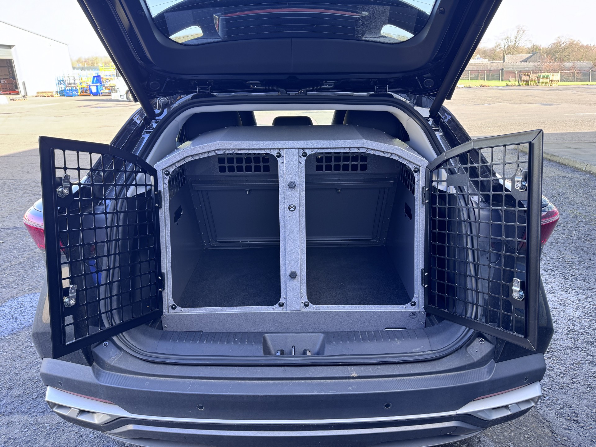 Designed for optimum safety, the TransK9/C25 Double Dog Cage incorporates an emergency rear escape door designed for use in the event of the vehicles tailgate becoming inoperable due to impact or malfunction. You’ll be able to access your dog/s by lowering the rear passenger seats and gaining access to them from the vehicles rear passenger doors.